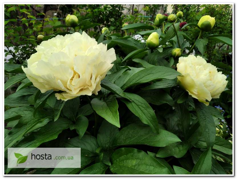Рання півонія з напівмахровими світло-жовтими квітами. Не потребує підпорок. Має гарні великі видовжені бутони, ціниться у флористів. |