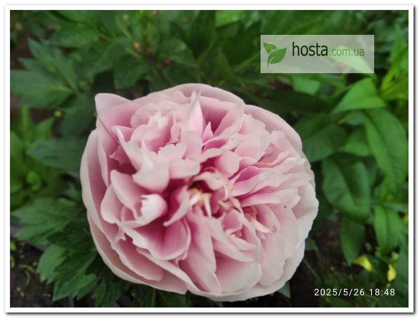 Висока півонія рожево-перлинного кольору з величезними пласкими квітами до 22 см дівметром. В перекладі — «Обідня тарілка». Дуже гарні бутони в напіврозпуску. |