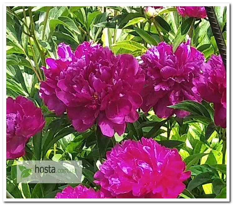 Старий французський сорт, має махрові і напівмахрові квіти кольору темної фуксії. Помітні жовті тичинки. Потребує опори. Приємний аромат. Рясне цвітіння на бічних бутонах. Бюджетна півонія, яка раніше була в кожному садку. |