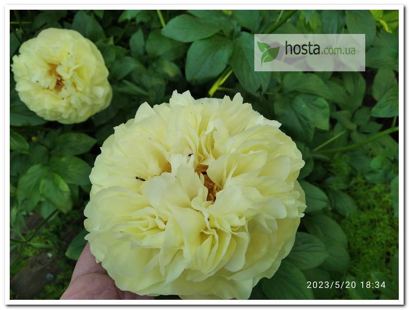 Висота до 80 см, квітка повна, махрова. Колір — кремовий, з персиковим підсвітом з центру. Дуже гарна півонія, але кущ нарощує повільно, починає квітнути не раніше 3-го року |