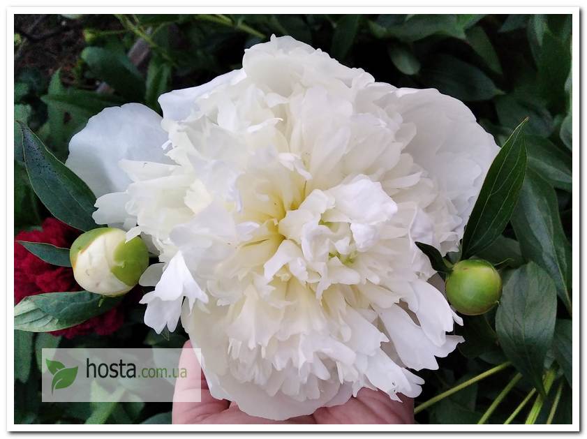 Старий французський сорт, має махрові білі квіти з бордовими мазками. Потребує опори. Дуже приємний і сильний аромат. Рясне цвітіння. Бюджетна півонія, яка радувала ще наших бабусь. |