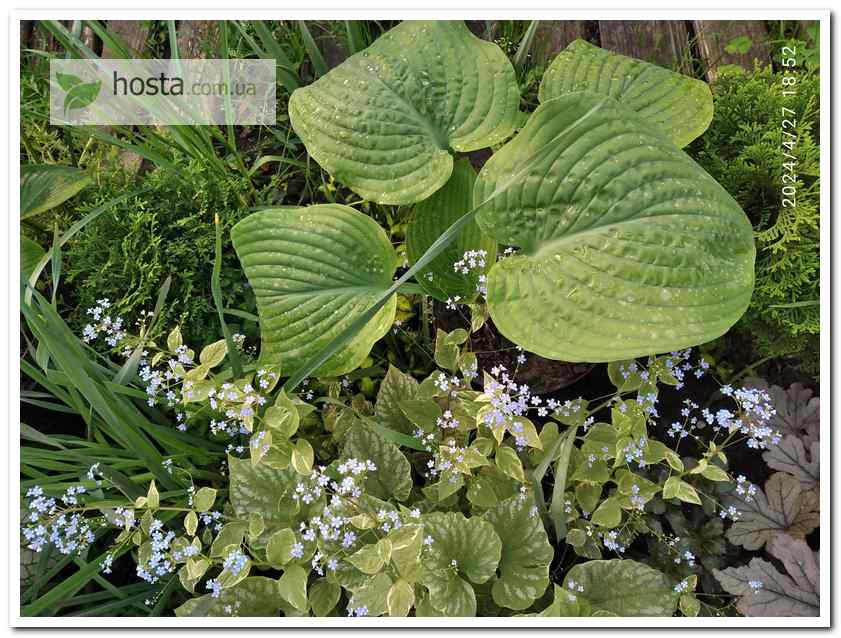 Висота заявлена 75-80 см на сайтах європейських розплідників, і 60 см в описі сорту на myhostas.be (База даних Американської асоціації хост). У мене кущу 3 роки, розмір ближче до 60 см, а далі буде видно, коли рослина подорослішає).