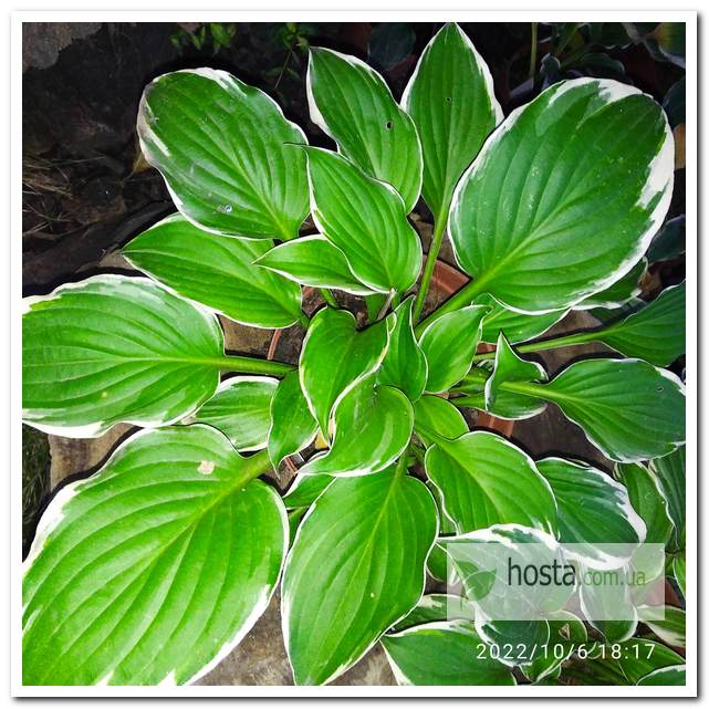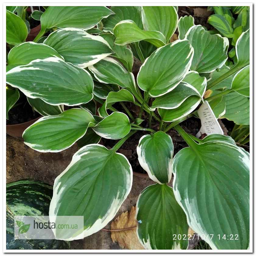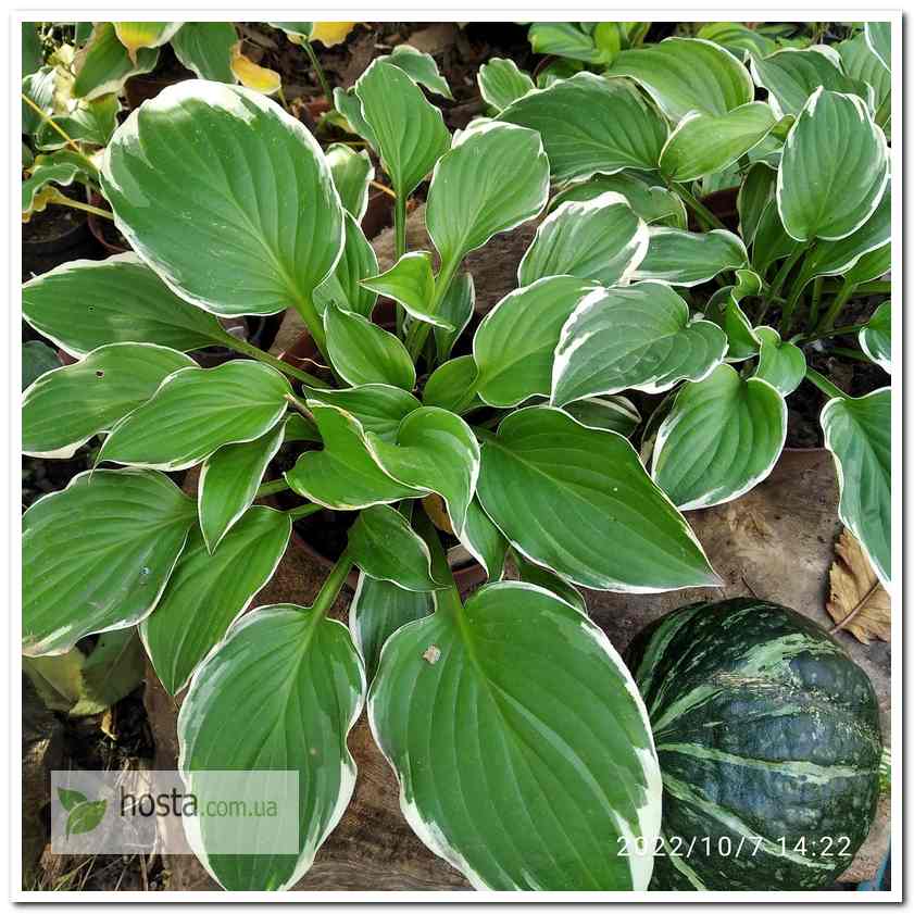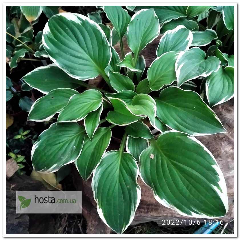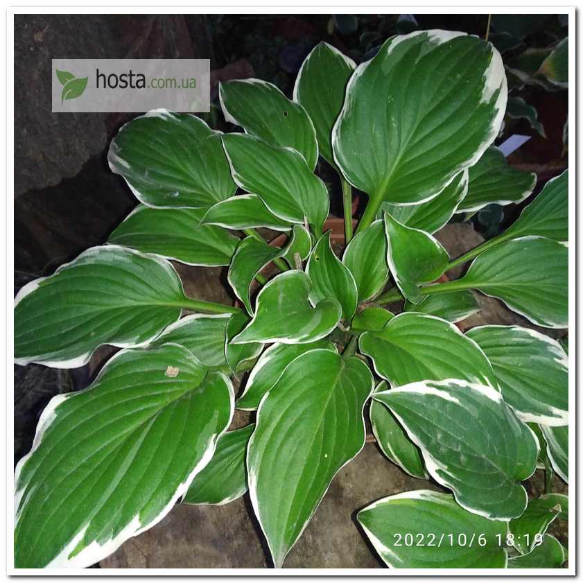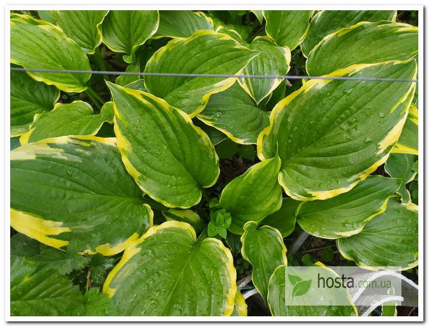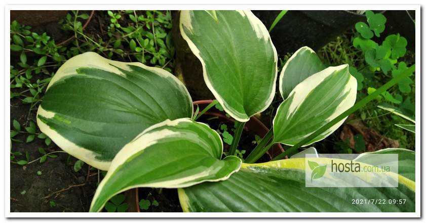 Зелене листя сочного відтінку середньої щільності з кремово-жовтою каймою, яка влітку стає кремово-молочною. Край злегка хвилястий.