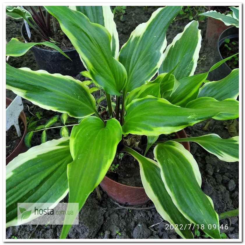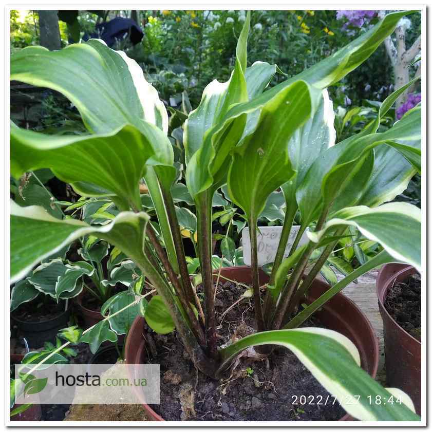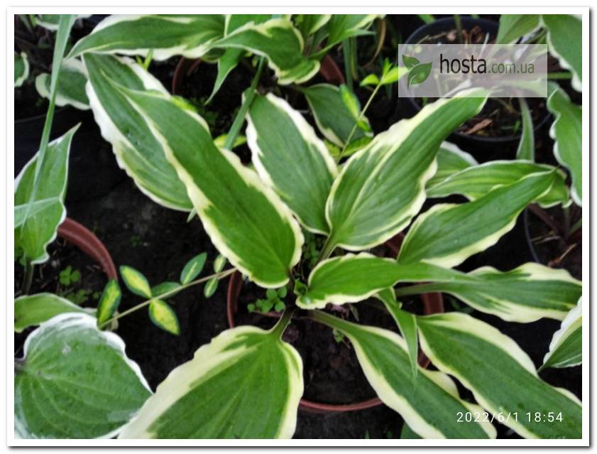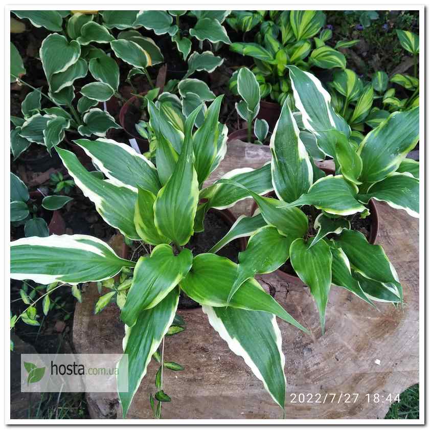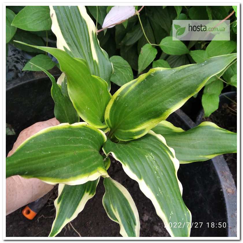 Хоста розміру М (45-50 см) з досить цупким листям ланцетної форми і цікавою каймою. Центр темно-зелений, а кайма не «рівненька», а часто має трохи різну форму — іноді заходить на центр листа більше, іноді менше.