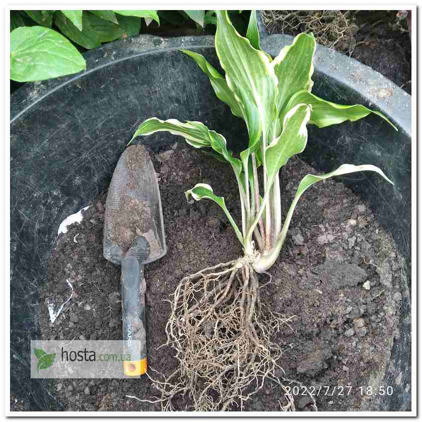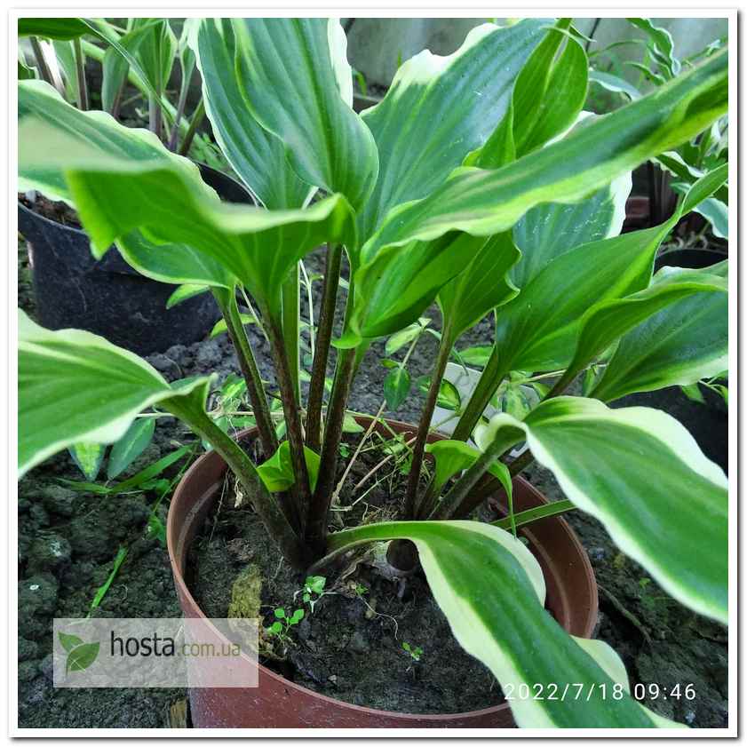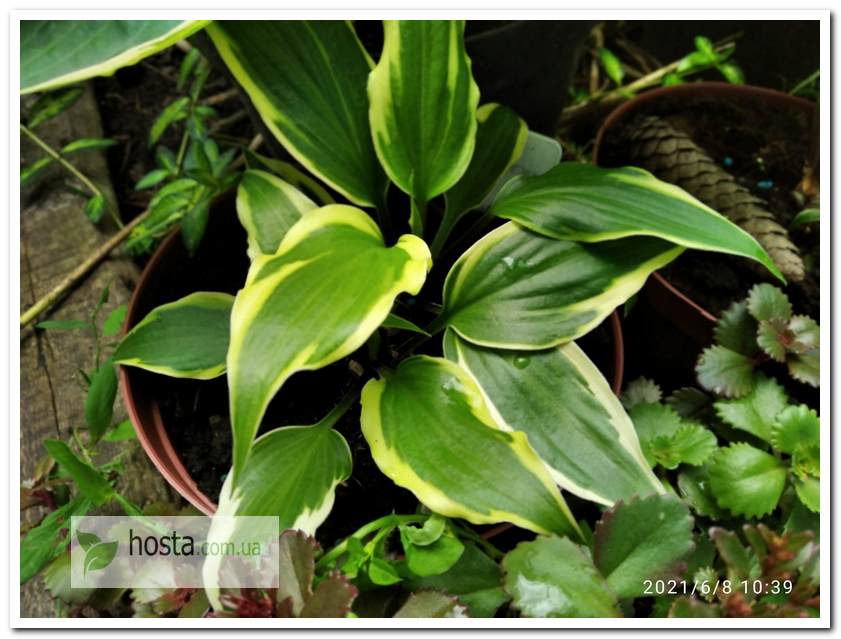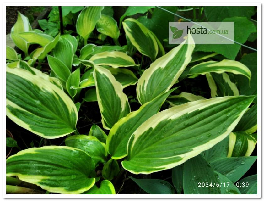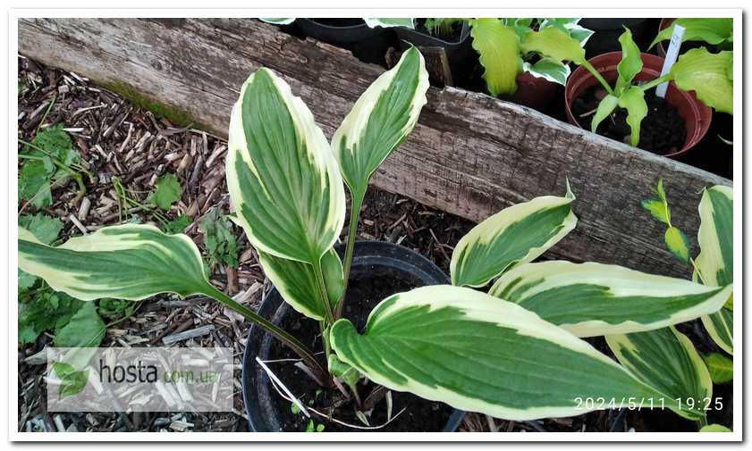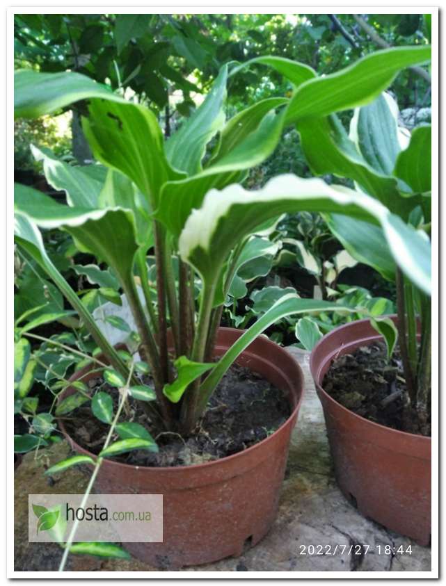 Хоста розміру М (45-50 см) з досить цупким листям ланцетної форми і цікавою каймою. Центр темно-зелений, а кайма не «рівненька», а часто має трохи різну форму — іноді заходить на центр листа більше, іноді менше.