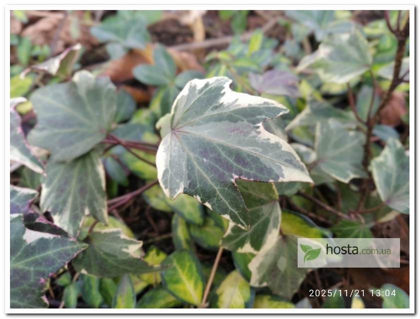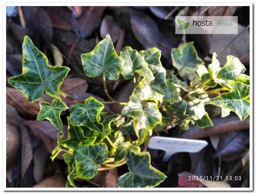 Середньорослий, пагони до 2 м. Дуже жорсткі сякраві листочки — зелені з жовтою окантовкою. Один з найяскравіших плющів для відкритого грунту. Зимує без укриття. | — | |