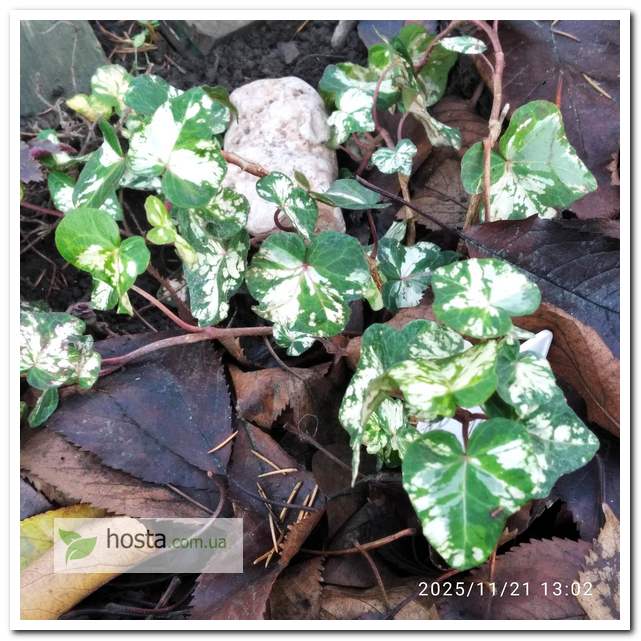 Сизо-сіро-зелений колір листя, світло-сірі плямки по краю листа. Цікавий сорт з помірною силою росту. | — | |